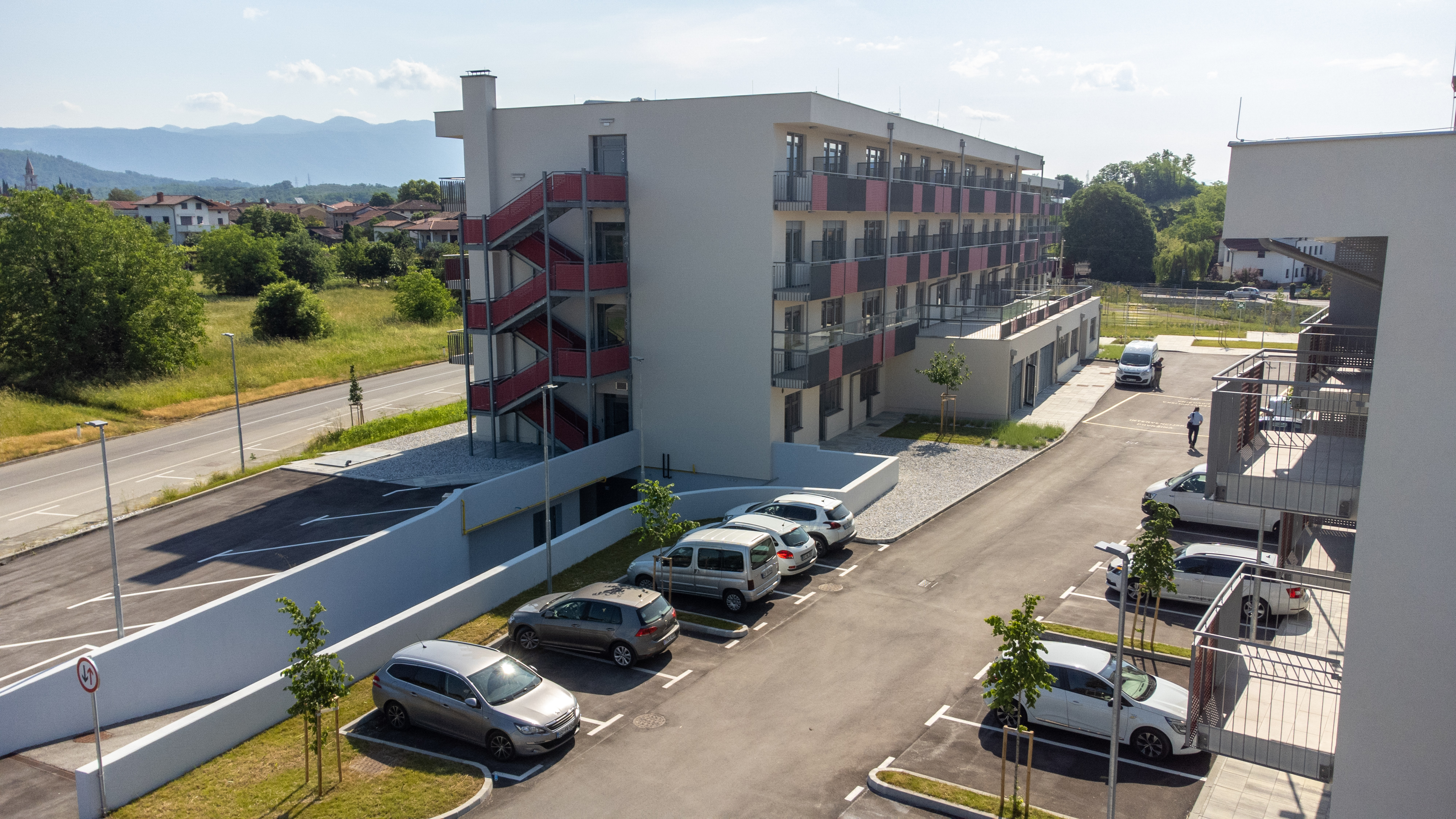V objektu Doma starejših občanov Vrtojba smo zasnovali 8 samostojnih enot, vključno z 6 bivalnimi enotami in 5 enotami za stanovalce z demenco. Enote so razporejene v štirih etažah, vključno s kletjo, kjer so tehnični prostori in podzemna povezava do objekta B. Objekt omogoča avtonomno delovanje enot in upošteva ločene komunikacijske poti za preprečevanje okužb. Pritličje vključuje skupne prostore, kot so jedilnica, terapije, administracija in kavarna, ki so dostopni vsem stanovalcem.