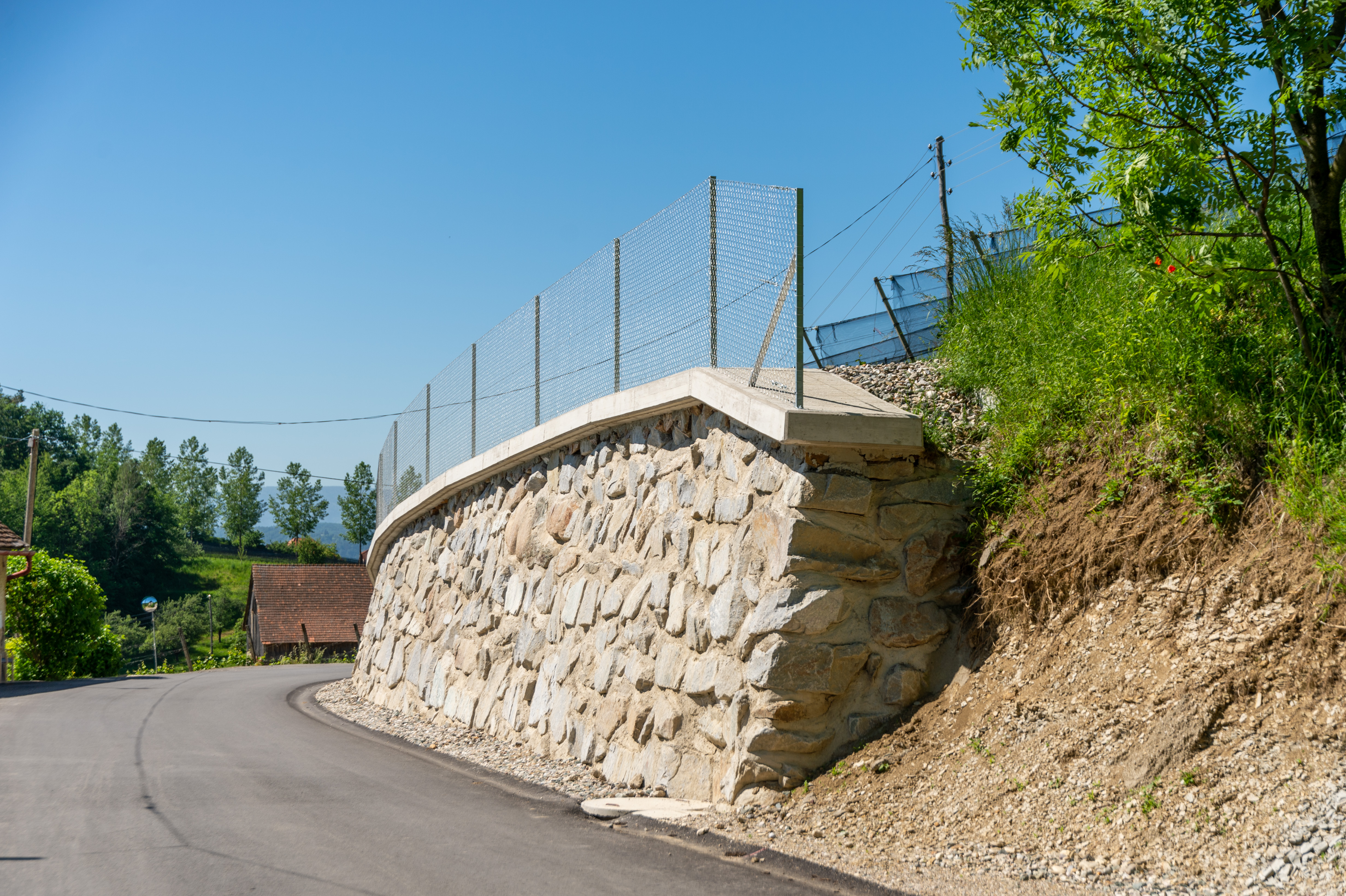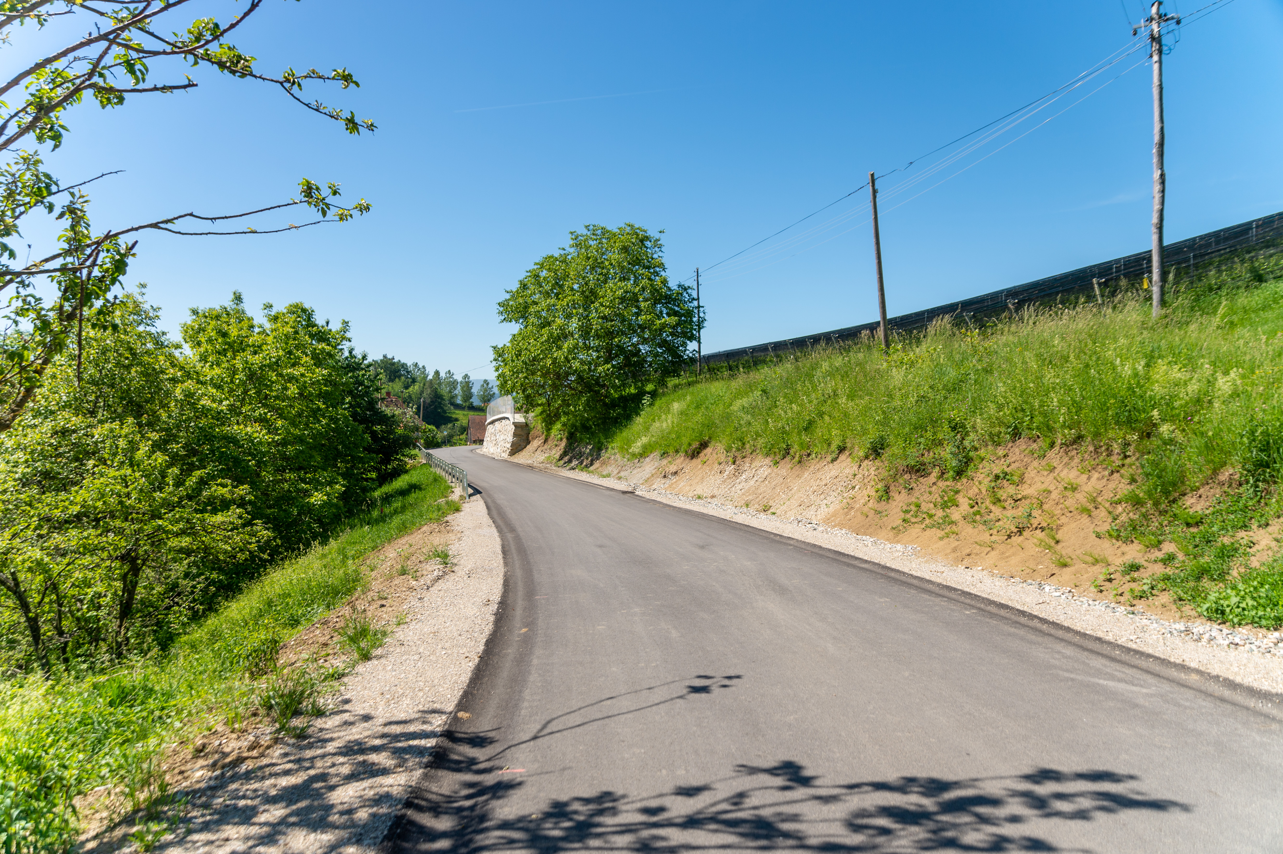 Izvedli smo sanacijo ceste R3-708, odsek 1330 Zg. Kungota – MP Plač, kjer smo se srečali z izzivom stabilizacije vozišča zaradi plazenja tal. Naloga je bila izvedba sanacije cestišča, obnovitev voziščnih plasti, ter odprava poškodb na bankinah. Delo smo začeli z izvedbo kamnite podporne zložbe za stabilizacijo tal, nato pa smo sanirali poškodovane razpoke na vozišču. Obnovili smo poškodovane plasti in prilagodili cestišče z namenom večje varnosti za uporabnike ceste. Za stabilizacijo tal smo uporabili geotekstil, ki je pomagal pri preprečevanju nadaljnjih premikov tal. Vključili smo tudi prilagoditev priključkov ceste na stanovanjske objekte, s čimer smo zagotovili nemoten prehod in boljšo dostopnost. Na koncu smo izvedli obnovo ceste v skupni dolžini 184 metrov, s čimer smo zagotavljali varno prometno povezavo, primerno za vsakodnevno uporabo. Vse izvedene aktivnosti so bile usmerjene v izboljšanje stabilnosti in varnosti prometne infrastrukture.